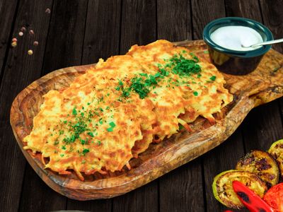 Картофельные драники, обжаренные на гриле, со сметаной