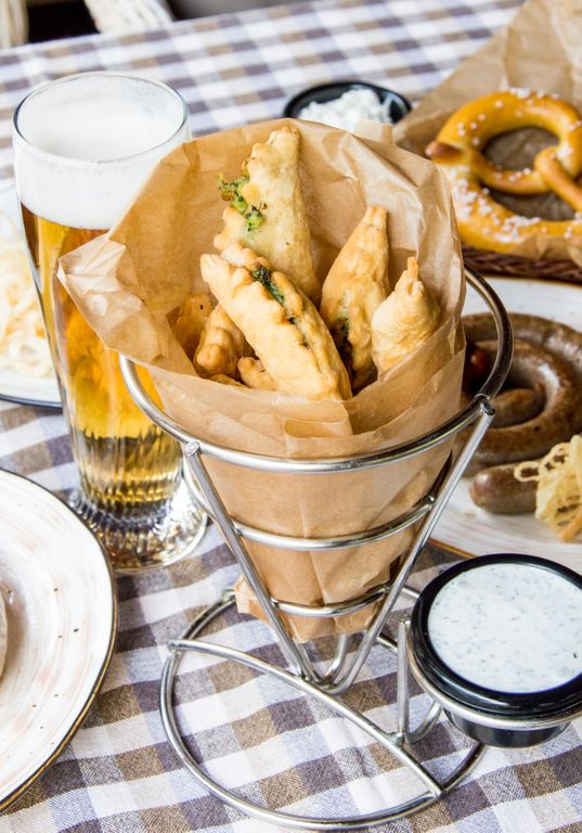 Идеальное сочетание домашнего сыра и зелени, жареного в тесте со сметанным соусом.