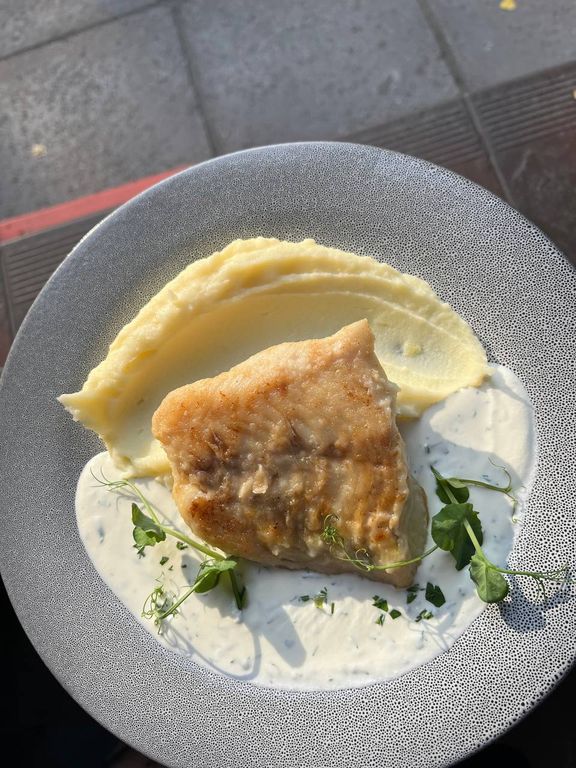 Филе судака, картофельное пюре, сливочный соус с креметтой