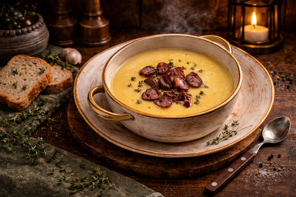 Нежный крем-суп из картофеля со сливками и тимьяном перенесет вас в мир мягких текстур и утонченных вкусов. Выберите пикантность охотничьих колбасок или нежность тигровых креветок — и ваш обед заиграет новыми гастрономическими красками. Этот суп станет идеальным выбором для уютного обеда или ужина.